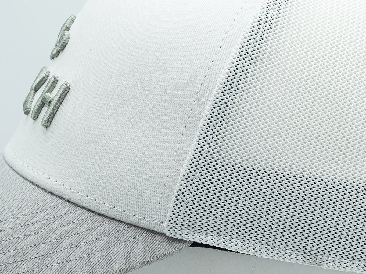 Adopt a casual and trendy look with the "Évasion" Two-Tone White / Gray cap , an essential from our Spring-Summer 2025 collection . Inspired by the world of trucker hats , this cap is made of high-quality cotton and features a two-tone white and gray design that combines simplicity and modernity. The breathable mesh back panel ensures optimal ventilation and exceptional comfort , perfect for all your summer activities.